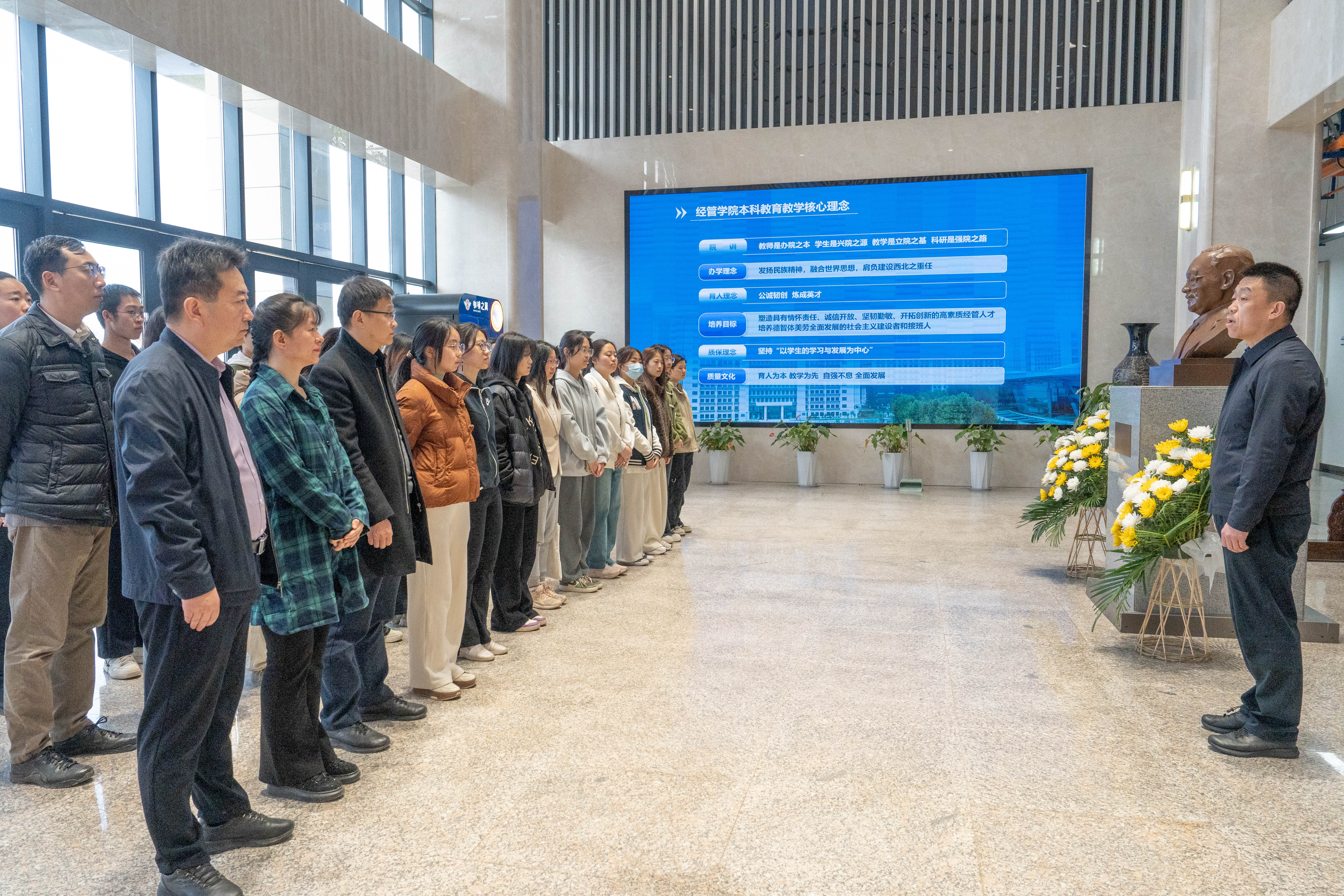 苍松翠柏映忠魂,浩气长存铸丰碑。为深化学院“公诚韧创,炼成英才”的育人理念,弘扬老一辈学者扎根西部、服务国家的崇高品格。我院于2025年4月1日上午开展2025年清明节主题思政教育实践活动,学院党政领导班子、2024级经济学拔尖班学生、学院第七期青马班学员和辅导员代表共计30余人参加。