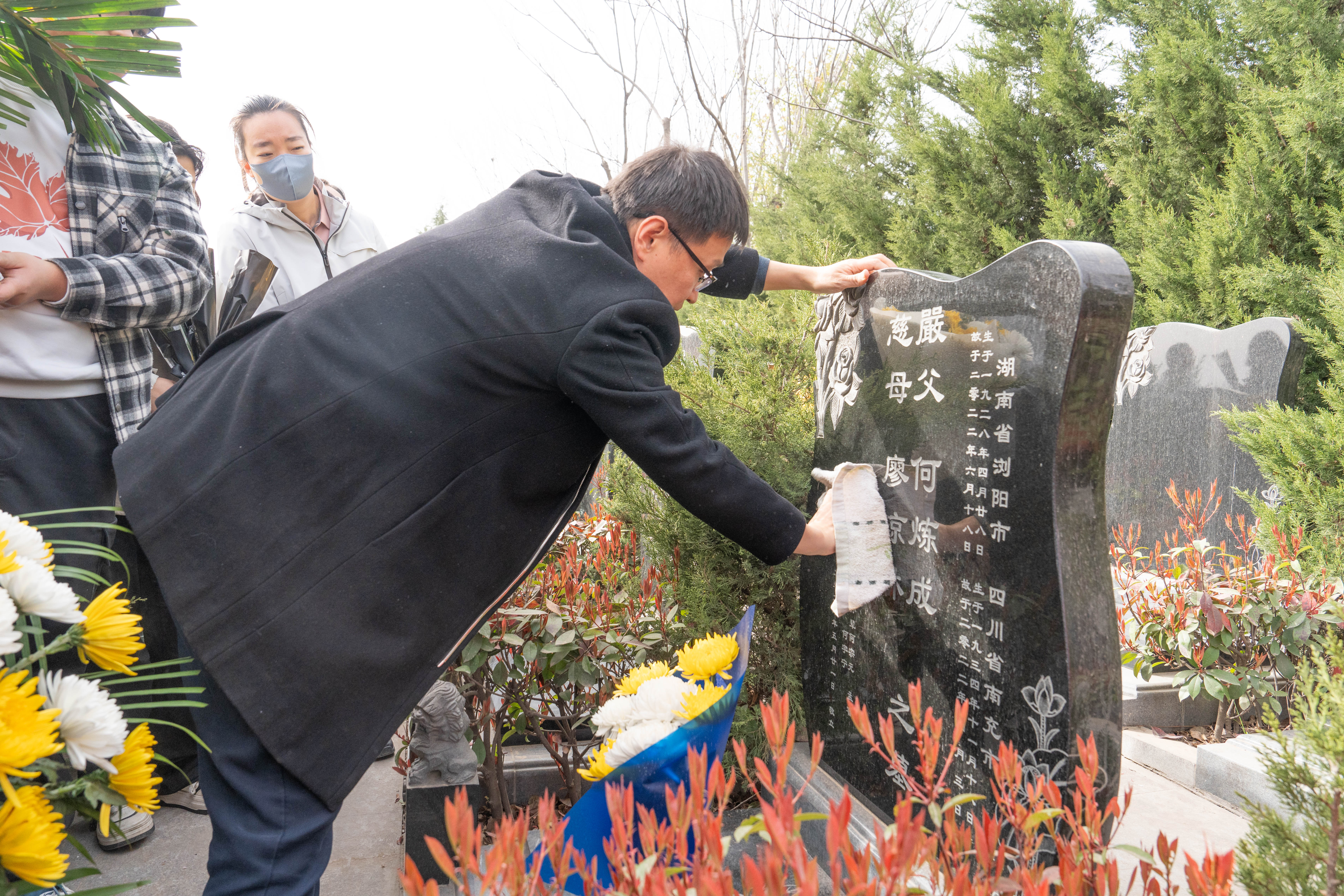 随后,全体人员乘车抵达西安凤栖山人文纪念园。师生们庄重地为何炼成先生擦拭墓碑,依次敬献素菊,鞠躬以寄哀思。