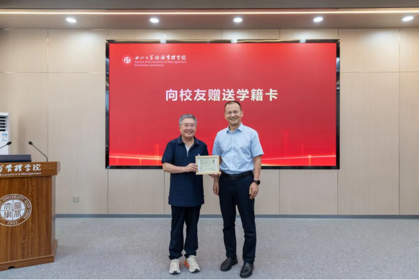 崔延力和杨晓分别向81级旅游经济班和每位捐赠校友,颁发捐赠证书。