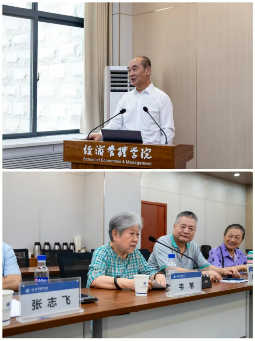 2025年7月9日上午,我院建院40周年系列活动暨1981级校友毕业40周年返校座谈会在长安校区宏观经济大楼举行。1981级任课教师代表王忠民、李鼎新、韦苇、杨德生、张晓明、吴家凤和经济管理班、旅游经济班的28位返校校友,校党委常委、副校长张志飞、国内合作与校友工作处处长崔延力,学院党委书记张宇、院长马莉莉、副院长张华岭,院长助理、校友办主任杨晓参加座谈。座谈会由张宇主持。