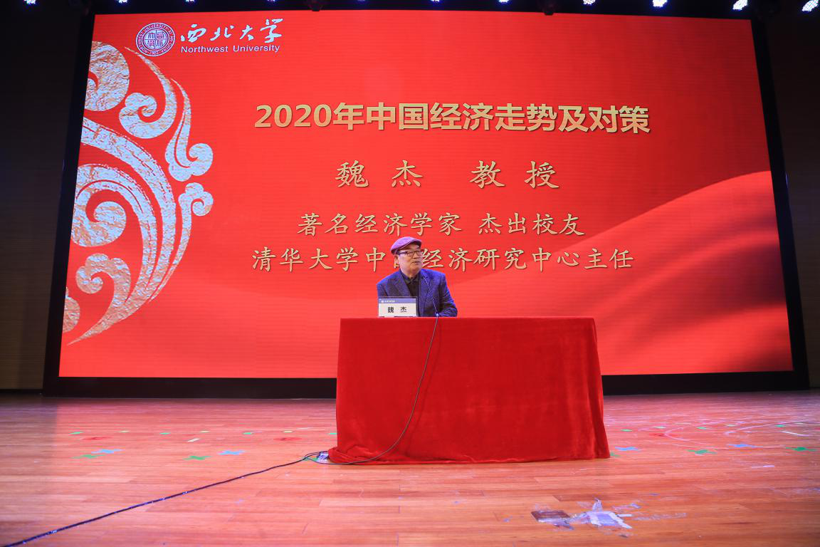2020年1月6日上午,由776net必赢官网主办,776net必赢官网MBA/EMBA教育中心、776net必赢官网高级管理培训中心承办的2020776net必赢官网新年论坛在长安校区活动中心报告厅隆重举行。特邀著名经济学家、清华大学中国经济研究中心主任魏杰教授作为主讲嘉宾。学院党政领导、历届校友及MBA/EMBA学员等600余人参加了论坛。论坛由西北大学党委常委、副校长王正斌教授主持。