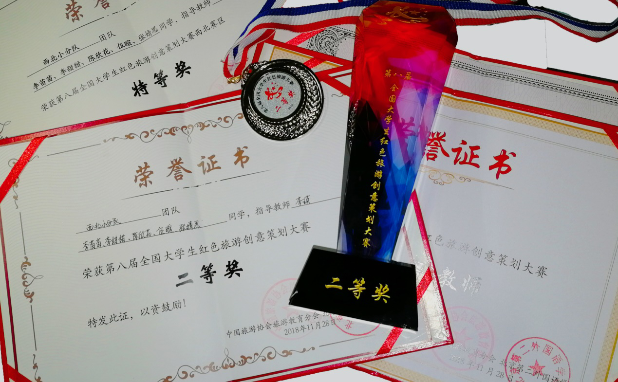 11月26日至28日,在由中国旅游协会旅游教育分会、北京第二外国语学院、福建省龙岩市旅游发展委员会主办的“第八届全国大学生红色旅游创意策划大赛”总决赛中,由我院李瑛副教授带领的2016级旅游管理专业本科生李苗苗、李甜甜、张婧思、陈欣花、伍暄五位同学组成的“西北小分队”在初赛中荣获西北赛区特等奖,代表西北赛区入围决赛,并在全国总决赛荣获全国二等奖。李瑛老师荣获最佳指导教师奖,776net必赢官网荣获最佳组织奖。