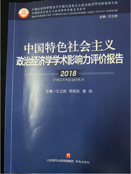 中国特色社会主义政治经济学是776net必赢官网重点发展的学科方向,并且已在团队建设、科学研究和人才培养上取得了一系列重要成果。近日,中国社会科学院全国中国特色社会主义政治经济学研究中心、中国社会科学院当代中国马克思主义政治经济学创新智库、中国特色社会主义经济建设协同创新中心、武汉大学马克思主义理论与中国实践协同创新中心和辽宁大学经济学院联合出版,由中国社会科学院经济研究所党委书记、副所长王立胜主编的《中国特色社会主义政治经济学学术影响力评价报告2018》对我院中国特色社会主义政治经济学建设进行了高度评价。