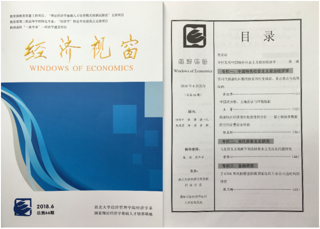 2000年10月,经济学基地创办了学生自己的报纸《经济视窗》,2001年12月改为16开的杂志式季刊,迄今已发行了66期。本刊已成为西北大学经济学基地培养学生大问题意识、修炼学术素养、提高论文写作水平、加强对外交流的重要载体和平台。《经济视窗》是教育部教育质量工程项目——“理论经济学基础人才培养模式创新试验区“支持项目,教育部第二批高等学校特色专业——“经济学”特色专业建设点支持项目和陕西高校“一流专业”——经济学建设项目。