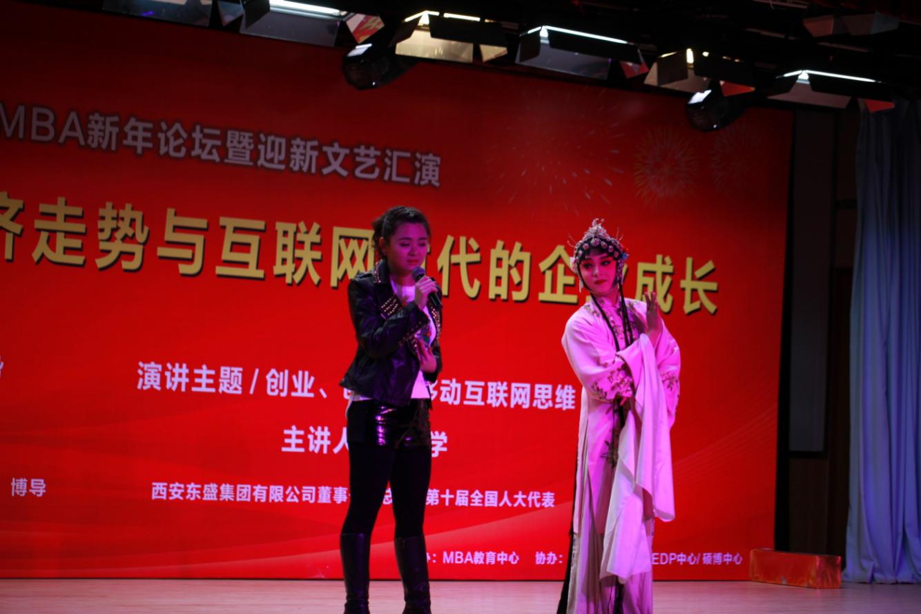 本次活动第二个模块是在校MBA学生的迎新文艺汇演,院长任保平教授在文艺汇演上进行迎新致辞,任院长简要回顾了2014MBA教育事业发展所取得的主要成绩,同时对未来提出了殷切希望,给师生送上新春祝福。