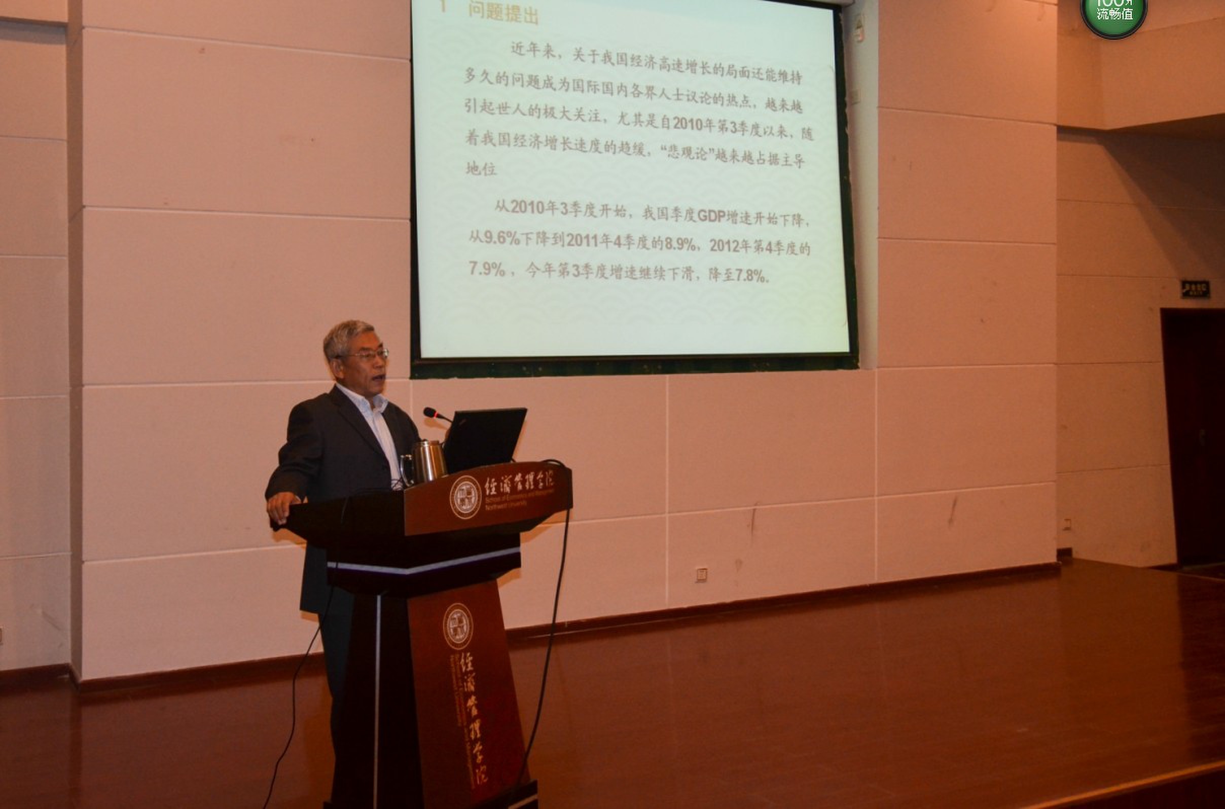 10月24日晚7点,我院第七届研究生学术月活动专家报告会之五在金海恒业报告厅举行,西北大学学术委员会副主任、776net必赢官网学术委员会主席白永秀教授应邀作了题为《中国经济转型:由超高速增长到相对高速增长》的学术报告。报告会由副院长吴振磊副教授主持,我院部分教师、研究生和本科生300余人到现场聆听了报告。
