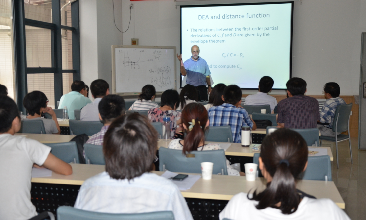 外莱特教授以An overview of prodction economics in 2013为题,回顾了生产经济学的历史,然后集中讲述了DEA方法的发展。在第一部分,外莱特教授介绍了于19世纪30年代到19世纪60年代发展起来的S-C-P模型,并指出该模型存在因果关系不明的问题。在19世纪60年代至19世纪80年代,产生了现代生产经济学。其间,大部分研究集中在生产的技术特征上,如规模报酬、生产率与技术进步、替代弹性、范畴经济和柔性测度。自19世纪70年代起,学者的研究重点放在了有效性的测度上,并发展了SFA方法和DEA方法。在第二部分,外莱特教授和大家讨论了他的两篇文章。一篇文章解决了DEA方法中的一个重要问题,即如何测度一些技术特性,但局限在通过一阶偏导计算的技术特性。另一篇文章探讨了如何解决DEA方法中二阶偏导的问题,并给出了一个基本思路,即基于对偶性得到成本函数与距离函数之间的关系。