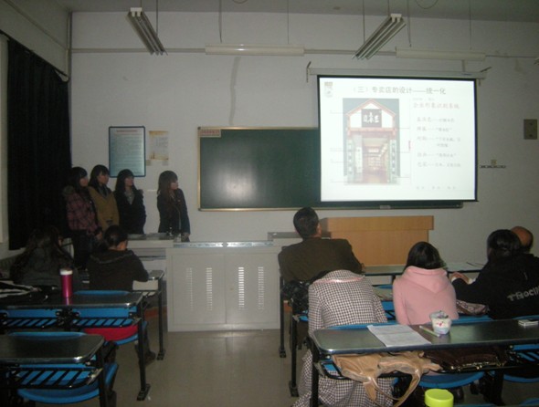 第二个出场的是三人行,她们同样以《谭木匠的差异化战略及其启示》为题,介绍了谭木匠的差异化战略,但其所选取的具体分析角度和使用的具体分析方法又有别于上一个团队,她们选用的是五力模型,从五个方面介绍了谭木匠差异化战略的成功之处,尤其是刘思思同学精彩的讲解得到了老师和同学的一致认可。