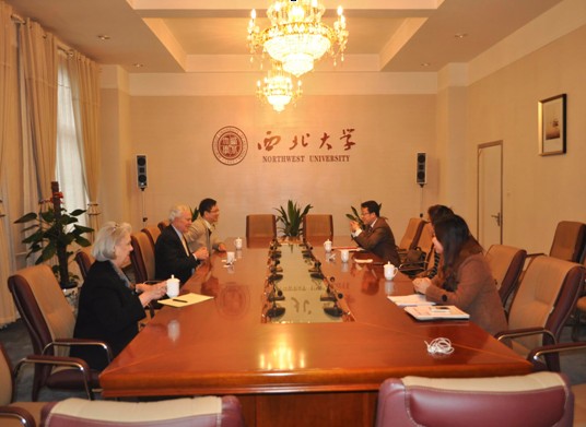 11月12日,美国新墨西哥州大学安德森商学院院长道格拉斯•布朗教授携夫人萨拉女士及安德森商学院罗欣教授前来我院就开展MBA教育合作进行了友好访问。