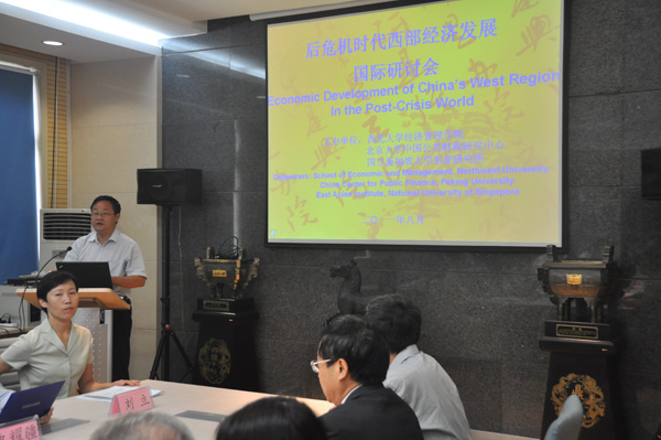 8月29-31日,由我院、北大中国公共财政研究中心和国立新加坡大学东亚研究所联合主办的“后危机时代西部经济发展国际研讨会”在太白校区召开,来自北京大学、国务院发展研究中心、新加坡国立大学、奥马哈内部拉斯加大学、韩国首尔大学、西北大学的相关专家学者等20余人到会。西北大学任宗哲副校长出席了会议,学校相关职能处室负责人和776net必赢官网领导班子成员参加了会议。776net必赢官网财政与税收系全体教师和研究生近20人到地聆听了与会专家做的报告。