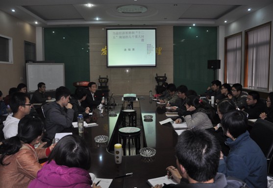 教育部经济学教学指导委员会主任、国务院学位委员会学科评议组召集人、南开大学原副校长、南开大学统计制度与方法研究中心主任、博士生导师逄锦聚教授于2010年12月13日上午在长安校区经管学院一层会议室为我院部分硕士、博士研究生做了题为《当前经济形势和“十二五”规划的几个重大问题》的学术报告。