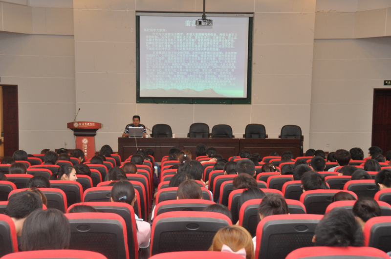 5月26日下午2点,校公安处刑侦治安科科长丁小刚老师应邀在金海报告厅为我院09级本科生做了一场安全知识教育专题报告,报告会由院党委副书记樊涛老师主持,360名学生参加了报告会。