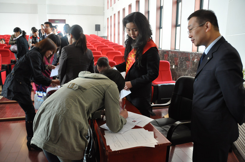 薛书记首先对华夏人寿到学院招聘毕业生表示欢迎。接着,薛书记从学科建设、师资队伍、办学规模、人才培养质量等方面向用人介绍了学院的概况,希望用人单位多录用我院毕业生,并期望和华夏人寿建立长久的合作关系。张毅刚副总经理介绍了华夏人寿陕西分公司发展情况及招聘计划,他热情欢迎我院毕业生到华夏人寿陕西分公司工作,表示以后每年会定期来学院招聘毕业生,和我院建立长久的合作关系。随后的招聘活动中我院60余名毕业生投递了简历。
