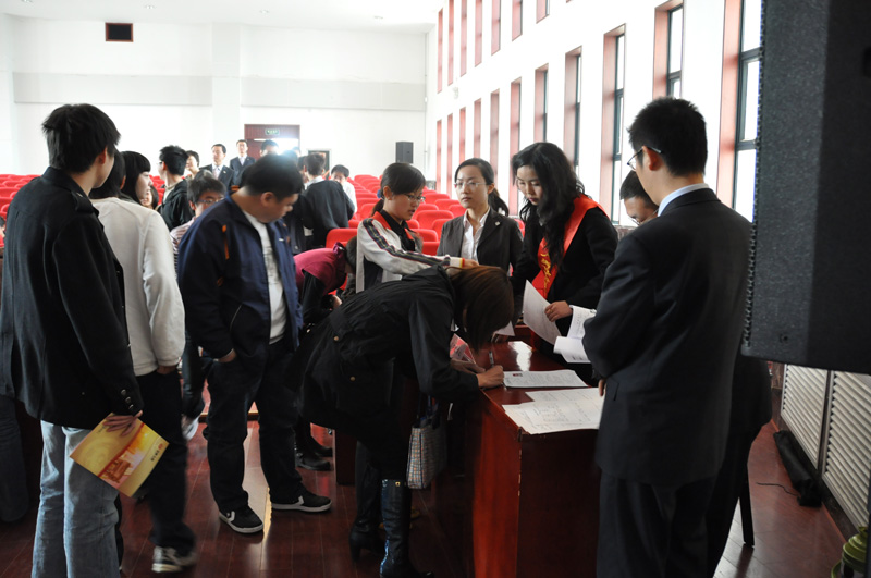 2009年3月26日上午,华夏人寿保险股份有限公司陕西分公司应邀到我院召开专场招聘会。院党总支书记薛来前老师,华夏人寿保险股份有限公司陕西分公司副总经理陶娟女士、副总经理张毅刚先生及人事部负责人出席了招聘会仪式。招聘会仪式由院党总支副书记樊涛老师主持。