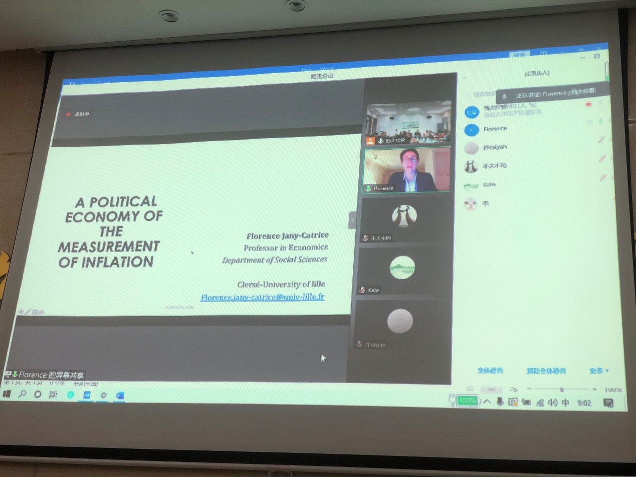 Florence Jany-Catrice教授的讲座题为“A Political Economy of the Measurement of Inflation”。她认为现有测度通货膨胀的方法存在问题,其中包括商品选择的问题,以及如何将科技创新(innovation)和产品质量(quality)变化考虑在消费者物价指数(CPI)的统计核算过程当中。Florence Jany-Catrice教授从四个层面入手,分析了影响CPI测量的因素,它们分别是管理机构(政府、统计部门)的形态、微观数据的获取条件、宏观体制(竞争制度、生产制度)的演变以及指导国家运行的思想体系。她对1940年至今法国历史上物价测度方法发生重大变化的阶段进行了划分,并着重介绍了1999至2002年欧元推行初期对物价和通胀衡量所产生的重大影响。欧元作为一种新货币的引入引发了民众对其的猜测并持有怀疑态度,这使得官方统计的通胀指数与消费者所感知到的实际购买力的变化之间存在巨大差距。除此之外,贫富差距的拉大、必要支出的增加、消费者主导模式的逐渐形成及大数据时代的到来等诸多因素使“通胀”的概念正在发生改变,而它的衡量方法更是值得进一步探究。Florence Jany-Catrice教授最后指出当下全球疫情时期人们消费习惯与消费方式发生的重大变化对物价指数与通货膨胀测量方式的革新提出了全新的思考与挑战。