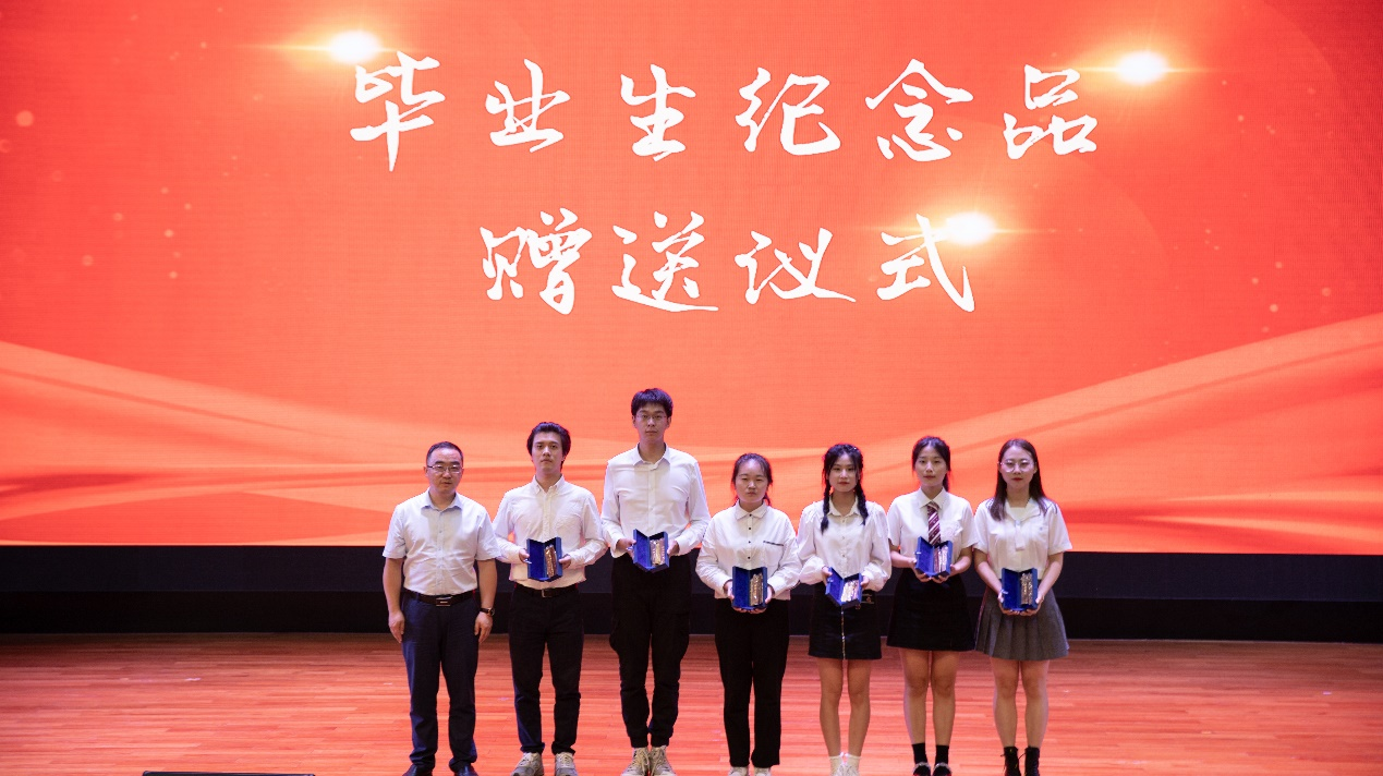 旅游管理学系主任梁学成教授为本科毕业生代表赠送毕业礼物