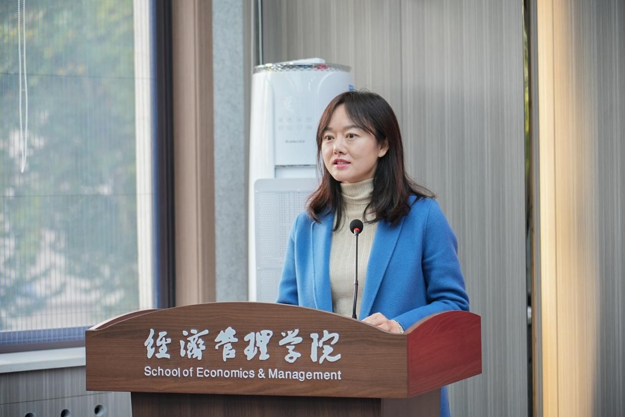 蒋怡在致辞中用“再次思考”“再次提升”“再次感谢”三个关键词回顾了陕西银保监局和西北大学的前期合作,并对共建合作进行了指导。蒋怡指出党的十八大以来,党中央不断强调要“坚决查处各种金融风险背后的腐败问题”“增强防范风险意识,提高治理腐败效能”。所以希望大家能带着自己的从业经历,借由这门讲座,再次思考行稳致远、清廉从业对于自己职业发展的重要意义。也希望大家可以结合自己的本职工作,对金融业实务有个再次学习、提升的过程。最后对西北大学经管学院在“立德树人”方面做得努力表示肯定,对西北大学在清廉金融文化建设中给予的大力支持表示感谢。