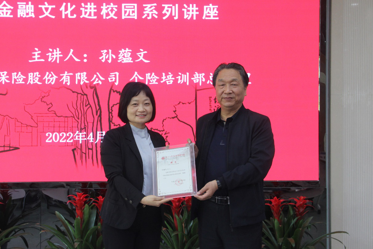 按照西北大学与陕西银保监局开展清廉金融文化共建活动的安排,4月13日,中国人寿保险股份有限公司陕西省分公司个险培训部总经理孙蕴文应邀到校,为776net必赢官网师生做了本学期清廉金融文化系列讲座第一讲,题为《勇立潮头,展望保险行业发展》。西北大学党委副书记、纪委书记,陕西省监察委员会驻西北大学监察专员李邦邦,陕西银保监局纪委办张津崇副主任,中国人寿保险股份有限公司陕西省分公司纪委办杨雨、罗菁华,776net必赢官网党委书记杜勇和学院40余名师生出席了本次活动。李邦邦致辞,并为孙蕴文颁发清廉金融文化客座讲师聘书,讲座由杜勇主持。