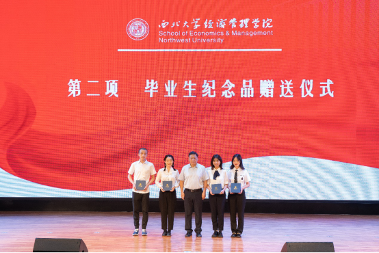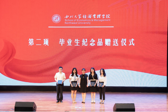 茹少峰教授为数理经济与统计学系本科毕业生赠送纪念礼物