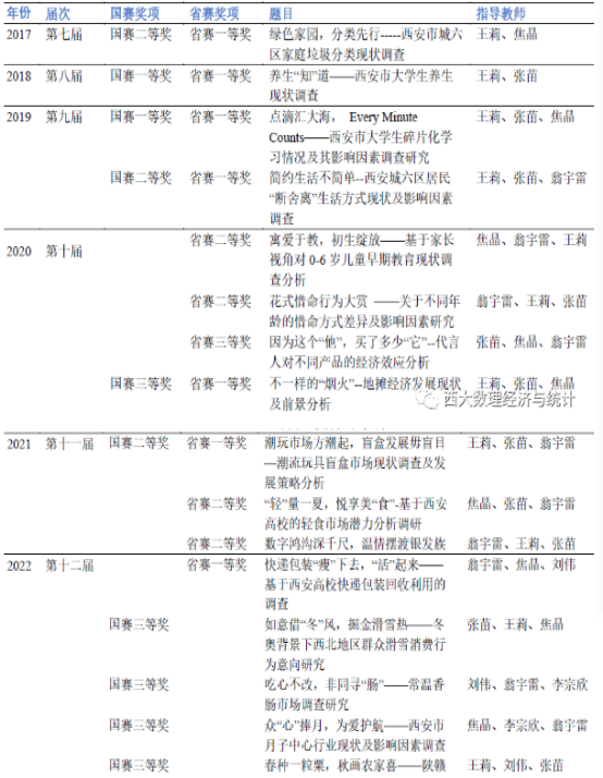 近5年全国大学生市场调查与分析大赛获奖情况