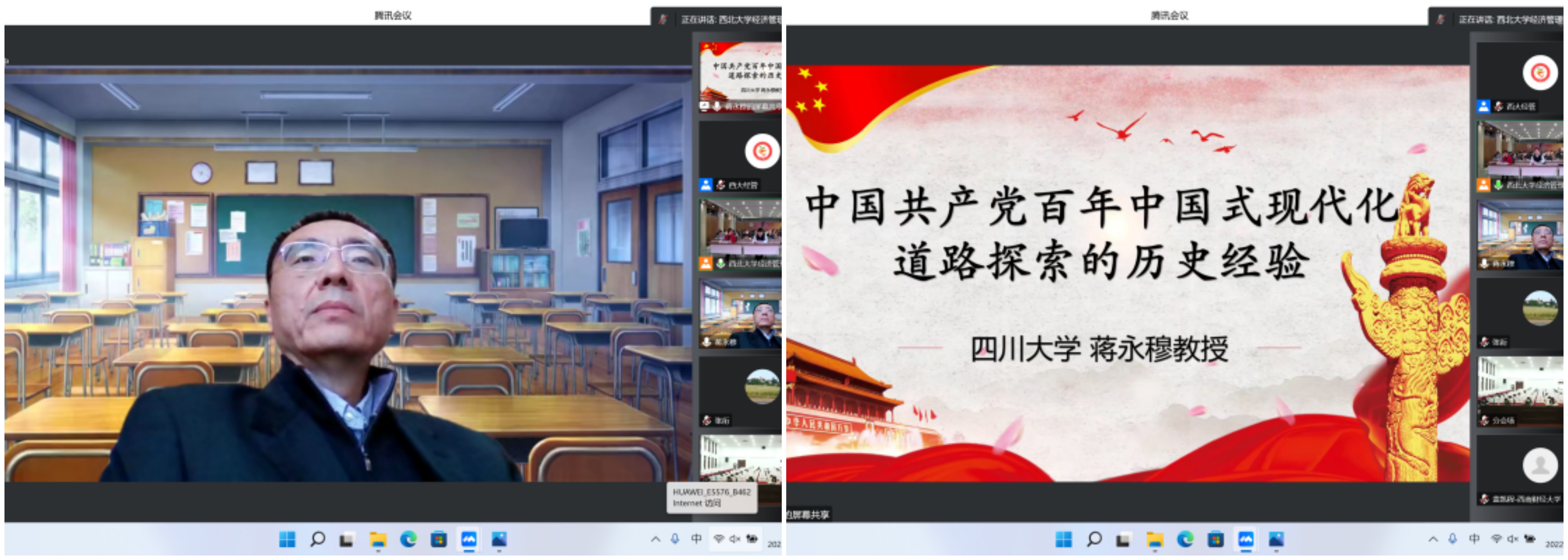 11月5日上午,年会开幕式上,西北大学校长郭立宏教授、本届年会主席西北大学白永秀教授分别致辞。开幕式后的主旨演讲阶段,中国特色社会主义经济建设协同创新中心主任、原南开大学副校长逄锦聚教授做了题为《全面贯彻习近平经济思想构建中国特色社会主义政治经济学自主理论体系》的报告,南京大学文科资深教授、原南京大学党委书记洪银兴教授做了题为《中国式现代化及其道路创新》的报告。西北大学副校长吴振磊教授主持开幕式和主旨演讲。