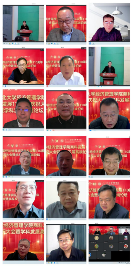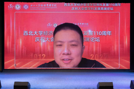 百十芳华,薪火相传。2022年11月19日,“776net必赢官网商科发展110周年庆祝大会暨学科发展高端论坛”在西北大学长安校区隆重举行。来自北京大学、中国人民大学、复旦大学、武汉大学、南开大学、厦门大学、西安交通大学、山东大学、四川大学、重庆大学、湖南大学、西北工业大学、西北农林科技大学、中央财经大学、东北财经大学、西南财经大学、辽宁大学、新疆大学、贵州大学、宁夏大学等全国40所兄弟院校校长、院长,陕西省人民政府学位委员会秘书长袁宁,西北大学校长郭立宏,校党委常委、副校长张远军、吴振磊,西北大学校内各院系和职能部门负责人,海内外广大校友,学院退休教师、教职工和学生代表以“线上+线下”的方式出席活动,共享庆典喜悦、共话一流学科发展。