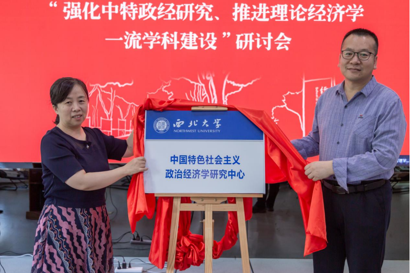 韩志斌教授与何爱平教授共同为“西北大学中国特色社会主义政治经济学研究中心”揭牌。韩志斌教授在致辞中强调了理论经济学学科发展对于学校和学院的重要性,以及中国特色社会主义政治经济学研究对于理论经济学学科发展及方向凝练的关键支撑作用,并对776net必赢官网获批建设省一流重点培育学科表示祝贺。何爱平教授,对研究中心成立的背景、建设历程、学科定位、取得进展进行了详细介绍。