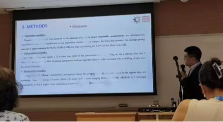 我院三位教师谭乐副教授、李晓华博士以及陈怡欣博士应邀参加了此次会议并在会议分论坛上分别做了论文汇报。在6月15日和16日的分论坛上,三位老师分别汇报了论文《Pathways of Opportunity Development: The Role of Identity Work in Academic Spin-offs》——论文基于身份认同视角解释了认同中的价值观、动机、目标和对创新的承诺对个体决策的影响,并提出了学者转变成为创业者的三种策略,以及这三种策略对创业机会开发选择的影响,揭示了为什么不同学术创业者会发现并开发不同的创业机会;《Heir to the Throne: Child-successors’ Willingness and Parent-incumbents’ Corporate Philanthropy in Family Firms》——论文基于社会情感财富等理论,量化研究了家族企业里子女继承意愿是否会影响父辈企业主关于企业慈善捐赠的决策,进一步考察了不同地区制度差异对二者关系的影响,最终展现了家族企业交接班中,两代人间的互动过程和行为结果;《情绪矛盾何时及如何促进员工韧性?——基于悖论视角有中介的调节模型》——论文基于悖论视角和社会信息处理理论,量化考察研究了情绪矛盾促进员工韧性发展的条件和路径,尤其阐释了悖论式领导在不确定和逆境环境下如何帮助提高员工韧性从而助力组织发展的激活机制。