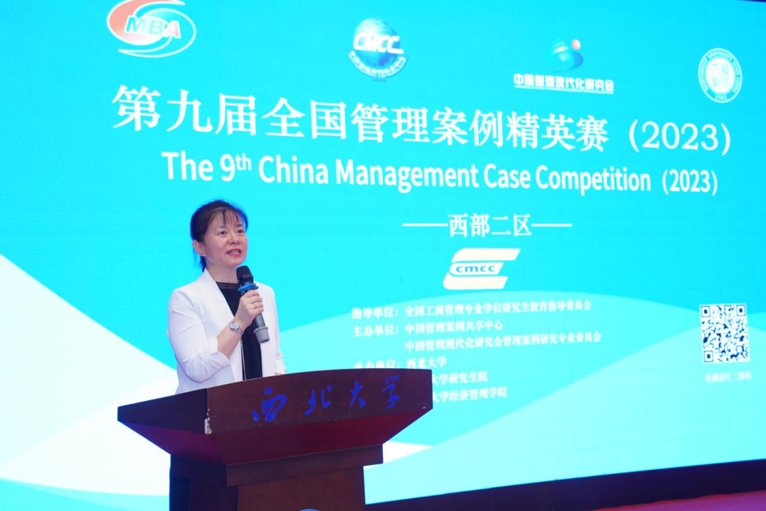 王萍主任代表全国MBA教育指导委员会对晋级西部二区的10所院校表示祝贺,对西北大学承办分区晋级赛表示衷心的感谢。她肯定了案例精英赛作为全国性赛事的重要地位,并指出赛事对于各MBA院校的案例教学和人才培养都有重要意义,各院校及学员通过搭建平台互相交流,为我国MBA教育事业做出贡献。