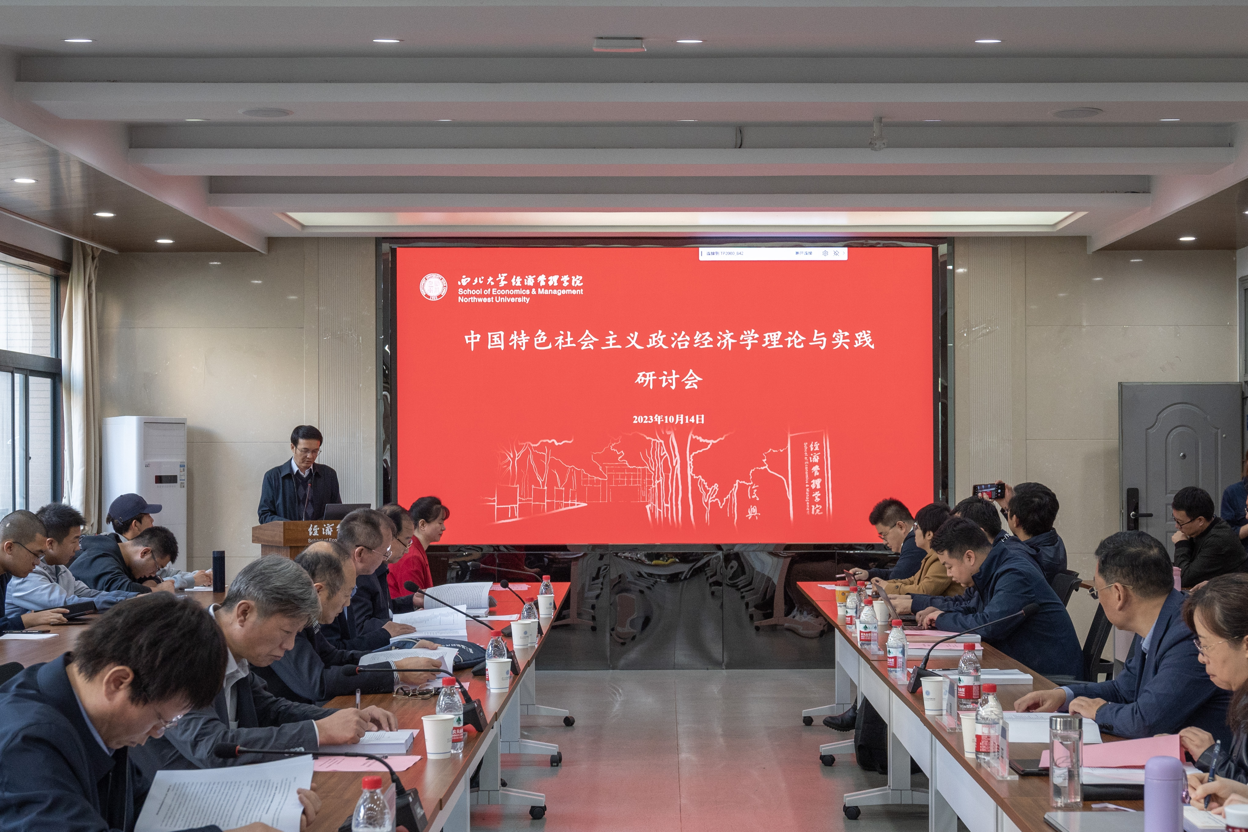2023年10月14日上午,西北大学中国特色社会主义政治经济学研究中心建设暨教育部哲学社会科学研究重大课题“中国特色社会主义政治经济学理论与实践研究”研讨会在我校长安校区召开。国务院学位委员会理论经济学学科评议组成员、教育部经济学类教学指导委员会委员、西南财经大学马克思主义经济学研究院丁任重教授,教育部高等学校经济学类专业教学指导委员会秘书长、全国马克思列宁主义经济学说史学会会长、中国人民大学经济学院邱海平教授,中国社会科学院经济研究所政治经济学研究室主任、中央马克思主义理论研究和建设工程首席专家张旭教授,南京大学全国中国特色社会主义政治经济学研究中心执行主任、中央马克思主义理论研究和建设工程首席专家葛扬教授,复旦大学党委宣传部副部长、国家社会科学基金重大项目首席专家高帆教授担任专家组成员参加研讨。校党委常委、副校长张远军出席会议并致辞,776net必赢官网党政班子成员及学院师生代表参加了会议。会议第一阶段由学院院长马莉莉教授主持。