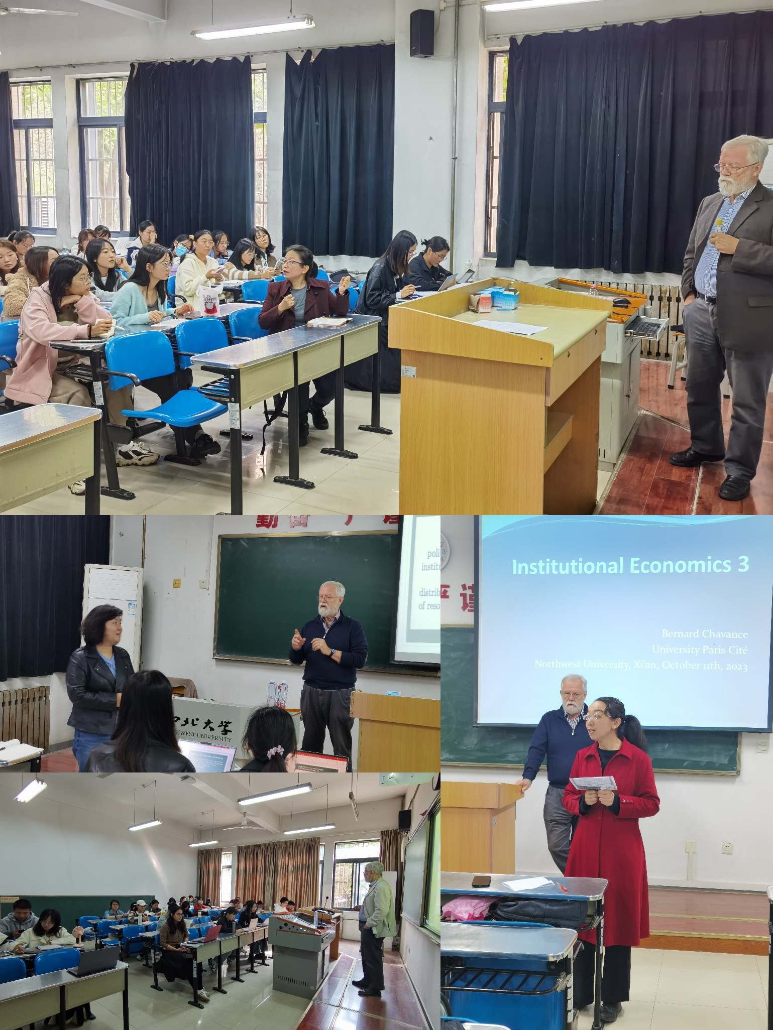 2023年10月9日-13日,776net必赢官网学术讲座暨“基地学术课堂”活动第一百三十五场成功举行。经济学系2021、2022、2023级经济学基地班、拔尖班以及学院部分教师参加了此次活动。本次活动邀请到巴黎城市大学名誉教授贝尔纳·沙旺斯(Bernard Chavance),并带来了为期四天的制度经济学短期课程。