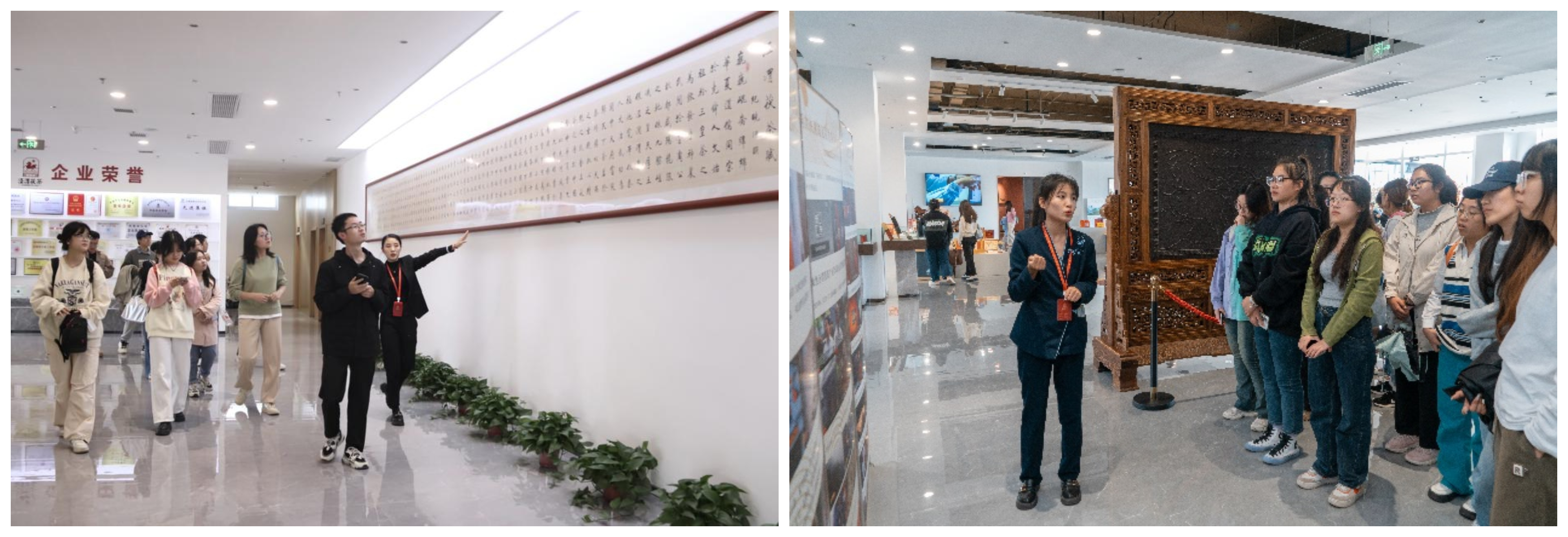 在实习参观活动的最后阶段,师生们来到了泾渭茯茶博物馆。这里以茯茶文化体验为主题,展示了茯茶的产生和发展历史与珍贵的茯茶产品。博物馆的各个展示区从不同角度体现了底蕴深厚的茯茶文化。师生们在这里品味茯茶文化的厚重,感受到了传统文化与现代科技的完美融合,深刻理解了数字化技术如何赋能传统农业企业转型发展。