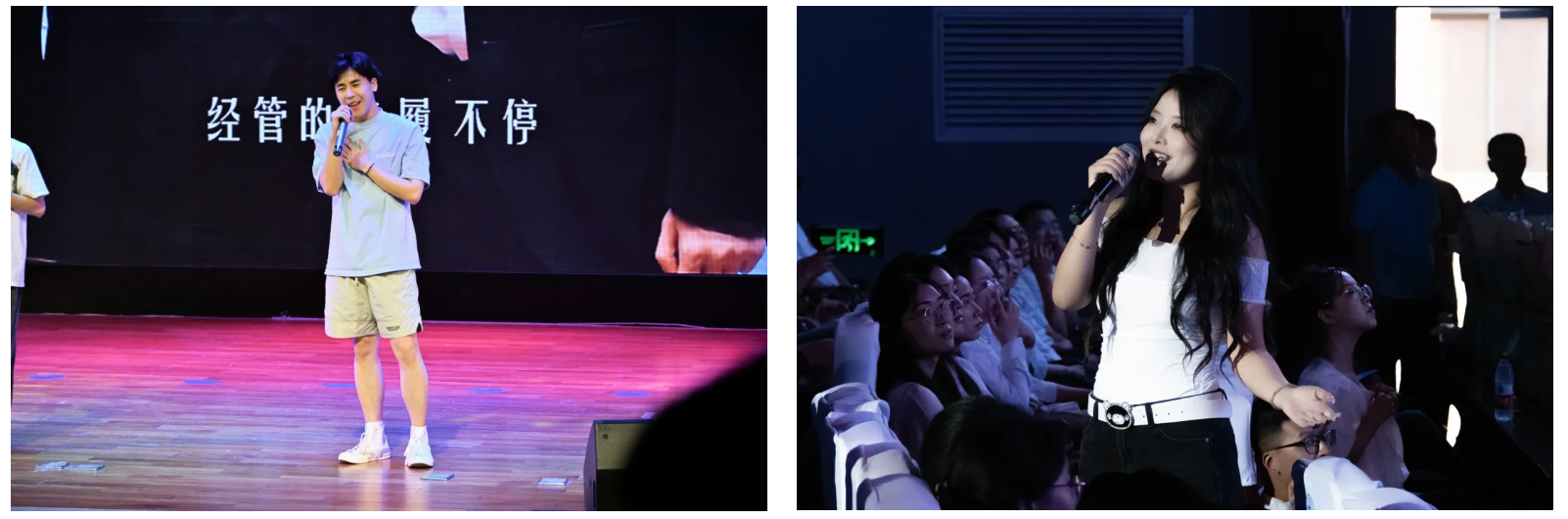 典礼在歌曲中拉开序幕。五位师生代表演唱了改编歌曲《转眼》《我们都拥有海洋》《裹着心的光》《终于结束的起点》,共同观看了学院全媒体中心为2024届毕业生精心制作的纪念视频《经管·飞光》,毕业生们一起回顾了在校学习生活的点点滴滴。