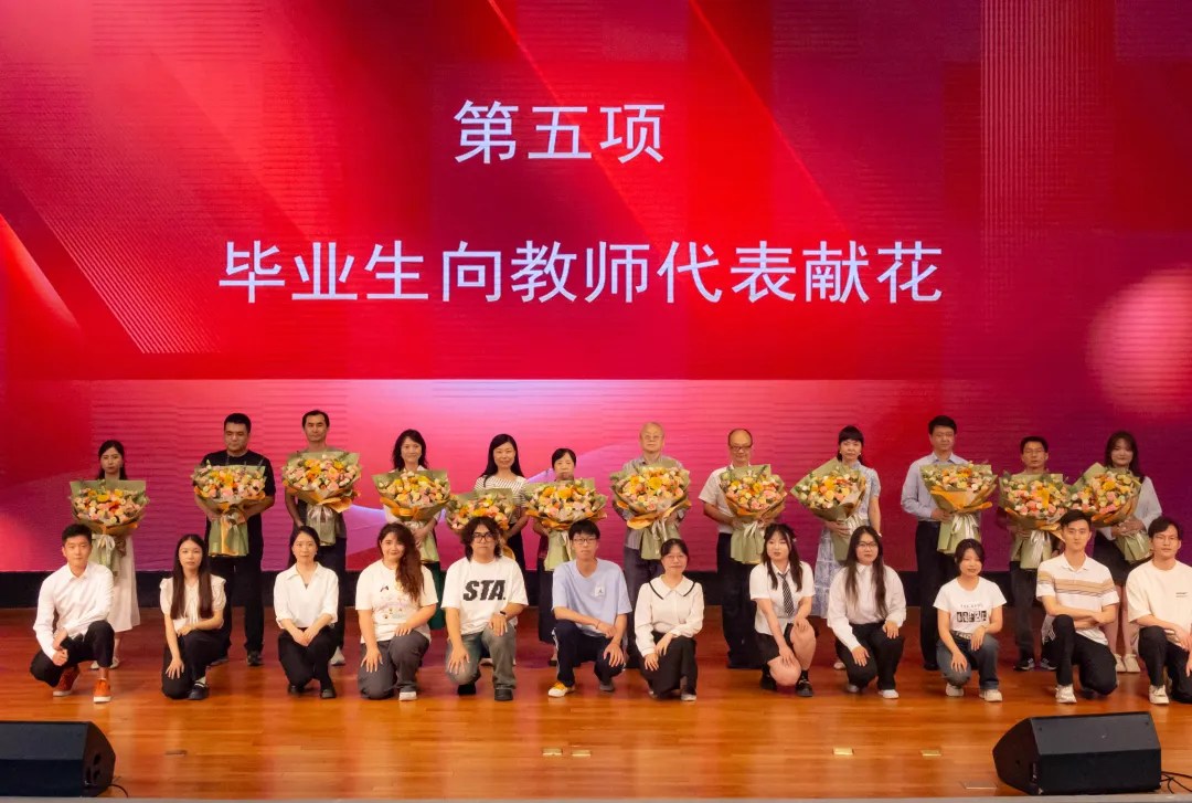 典礼第五项:毕业生向教师代表献花。在毕业生即将离别母校,踏上人生新征程之际,值此告别之际,2024届毕业生代表向学院各系教师代表、辅导员代表、行政代表献花,表达学院呵护栽培之泽,感谢师长引航教诲之恩。 典礼第五项:毕业生向教师代表献花。在毕业生即将离别母校,踏上人生新征程之际,值此告别之际,2024届毕业生代表向学院各系教师代表、辅导员代表、行政代表献花,表达学院呵护栽培之泽,感谢师长引航教诲之恩。