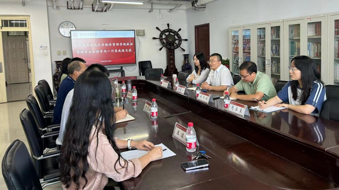 在河南财经政法大学旅游与会展学院,赵现红院长对学院发展历史,以及目前旅游管理专业(数字文旅方向)的招生政策、培养模式等情况进行了详细介绍,梁学成教授重点介绍了目前西北大学旅游管理专业发展面临的现实问题,以及对该专业转型发展的一些想法;旅游与会展学院王洁洁副教授重点介绍了数字文旅专业的人才培养方案修订和实施情况情况。随后,双方围绕旅游管理专业方向调整、师资队伍建设、人才培养方案以及学科发展等内容展开了深入交流。