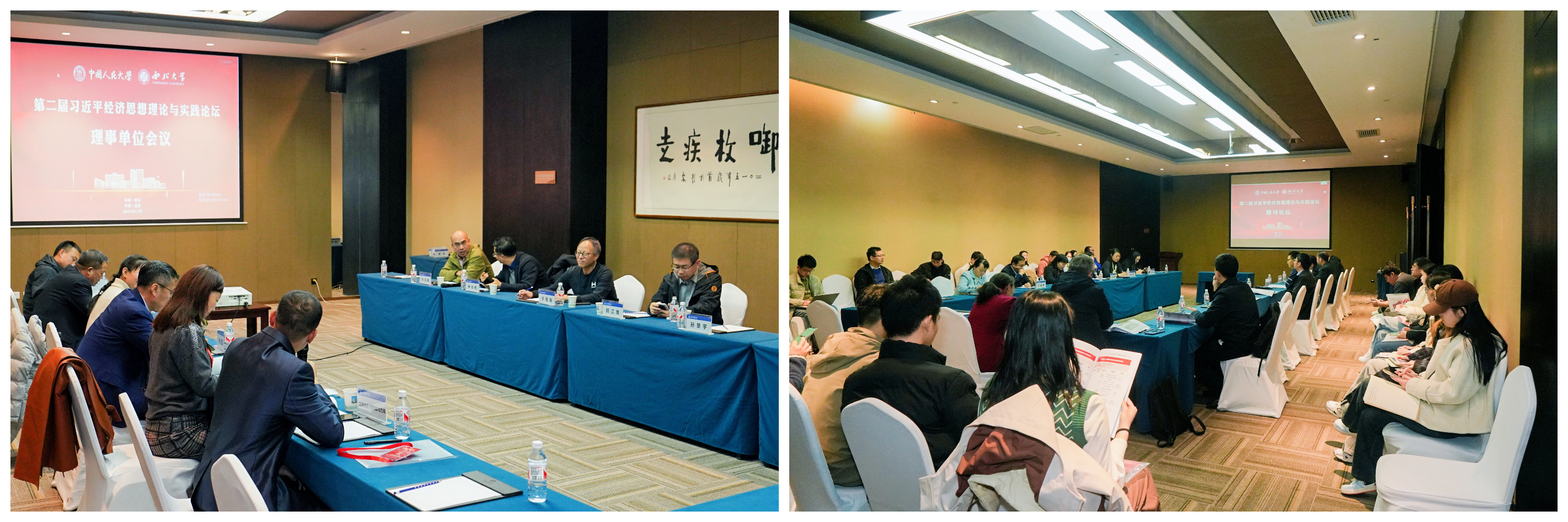 11月22日晚上,理事单位会议与学术期刊论坛同步召开。参加会议的理事单位代表就本单位在经济学人才培养、中国经济学自主知识体系建构、习近平经济思想理论与实践论坛的发展等问题进行交流。理事单位会议由中国人民大学经济学院执行院长于春海教授和776net必赢官网院长马莉莉教授主持。在期刊论坛中,围绕“期刊平台助力中国自主的经济学知识体系建构”这一主题,14家期刊的参会代表和与会师生就如何推进理论研究、人才培养、宣介传播等问题进行了深入交流与研讨。期刊论坛由《管理世界》副总编柏晶伟、《经济理论与经济管理》主编杨其静主持,西北大学期刊管理中心主任卫玲教授担任召集人。
