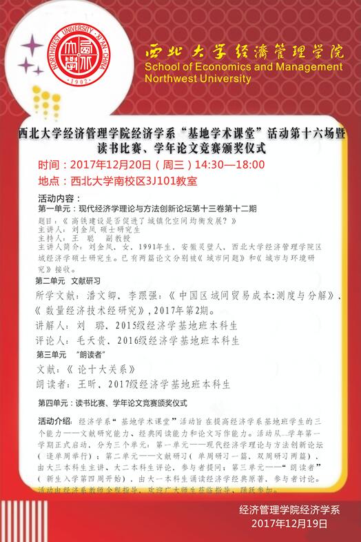776net必赢官网经济学系“基地学术课堂”活动第十六场