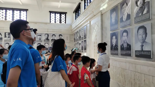 拾阶而上,我们进入纪念堂内部,首先映入眼帘的是湖南烈士纪念碑,纪念碑两侧现有东西两厅,以时间为脉络,分阶段展示了旧民主主义革命、新民主主义革命到社会主义建设时期157位湘籍烈士代表的事迹,展现了中国近代史上湖南人始终走在斗争前线的英烈事迹。黄爱和庞人铨是“中国第一次为无产阶级而死的先烈”;蔡申熙是红15军的主要创始人之一,牺牲时年仅26岁……其中每一位背后都有为了新中国的成立英勇献身的故事,舍生取义的诸多事迹,是一段抛头颅,洒泪血的悲壮史,他们为了民族的解放、国家的独立、人民的幸福,奉献了自己的一生,值得我们青年学生永远铭记和缅怀。