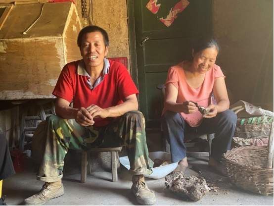 村民张玉良及其家庭是响应政府号召近几年才引入中草药种植的典型。作为异地搬迁入村的三世同堂家庭,张叔家经济较为拮据,住房面积小、耕地面积较少,同时承担老人养老医疗、子女教育及全家六口的衣食住行支出,迫切需要提高收入以维持生计。他家种植中药材的时间不算长,但几年来中药材种植的尝试却已经让张叔家尝到了甜头。从天麻、猪苓起步,逐渐引入茯苓、五味子,现如今张叔家从事种植业每年获得的收入能达到2-3万元,其中中药材创收占比已达到70%,当我们问及他今后是否还有扩大中药材种植规模的打算时,他满怀笑意地点头,“有呢,种的一年比一年多,挣得多呢,一年比一年好。”