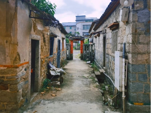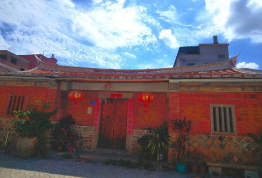 跟随着负责人的脚步,小队一行离开服务点,抵达田洋村里的古厝中。探访的古厝大都前埕后厝、坐北朝南、红砖白石墙体、房脊宛若翘燕尾。当小队前往陈睿思故居等历史文化遗迹时,发现其周边的环境以及建筑也得到了很好地保护与修缮。尤其是陈睿思先生曾亲自建立的瞻园更是在田洋村村委的带领下一改往年荒废景象,颇具休闲文化风采。