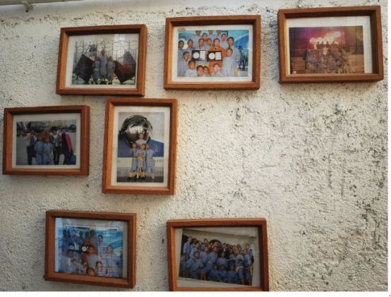 武馆内的通道有田洋村村民参与各项活动的剪影照片,这些照片宛若电影般表达了田洋村的村民的生活状态,他们比赛时释放激情、在活动中展现热情、在文艺会展时传递村民之间真切的感情。