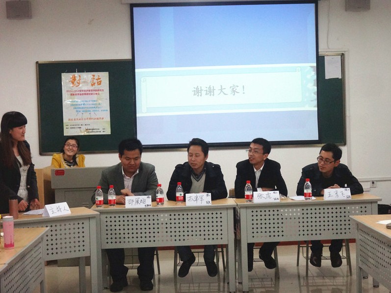 活动中,主持人首先就《西北大学研究生国家奖学金管理办法(暂行)》为大家做了全面解读,并就前期搜集到同学们最感兴趣和最困惑的十二个问题向国奖获得者进行了提问。四位国奖获得者结合自身的经历和经验对这些问题做了耐心的解答。其中苏建军博士与大家共同分享了读博以及论文的写作方面的经验,特别是关于论文选题方面他做了详细的讲解;张虎就大家关心的奖学金的评定,考资格证书等问题做了全面的解释;邵展翅就如何撰写论文以及发表论文等问题与大家进行了交流;王彦飞结合自己的经历建议大家一定要确定好一个研究方向,做有针对性的深入的研究。