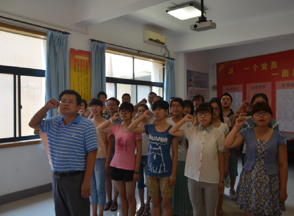 7月5日上午,学院党委在院2楼党员活动室举行了庄严而隆重的新党员入党宣誓活动。学院党委副书记李一凡、院团委书记马金保、党委秘书史炜等老师参加了此次活动。
