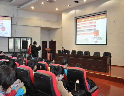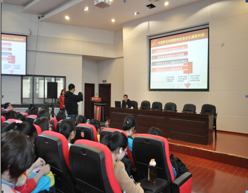 在讲座中,李刚教授从中国梦与中国特色社会主义道路创新、中国梦与中国特色社会主义制度创新与改革两个方面,对中国特色社会主义体制改革和中国特色社会主义制度的科学表述作了深入系统的阐述,并与在场师生分享了中国特色社会主义体制改革的5个核心体系。他结合自身经历,诠释了中国历经千辛万苦通过改革开放走向了富强之路,通过对“中国梦”以及“陕西梦”的阐释和解读,鼓励同学们珍惜当前美好幸福的大学生活,坚定信念,刻苦学习,积极实践,提升素质,为个人“成才梦”的实现不断努力。