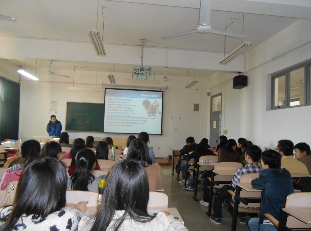 本次活动邀请三位通过CFA(特许金融分析师)、雅思和CPA(注册会计师)等热门证书的同学与大家进行经验交流,他们分别是2011级金融学专业的回广睿同学、2011级金融学专业的冯雪同学和2011级会计学专业的尹云阁同学。