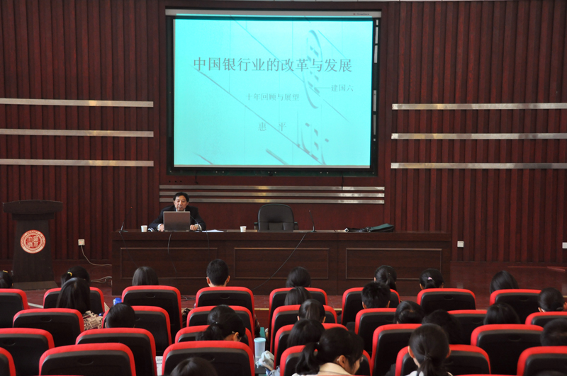 10月28日下午,中国工商银行陕西分行党委书记、行长惠平先生应邀在公管学院金海报告厅作了题为《中国银行业的改革与发展:建国六十年的回顾与展望》的专题报告,报告会由776net必赢官网副院长赵守国教授主持,150余名研究生参加了报告会。