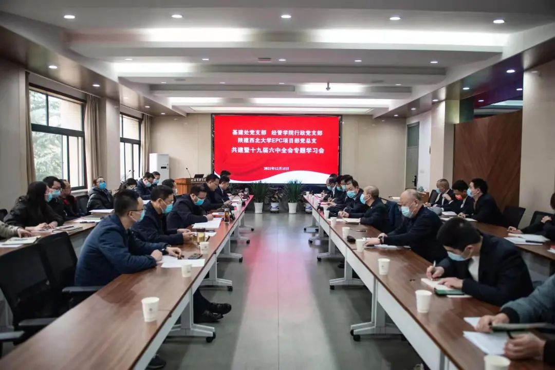 为深入学习贯彻党的十九届六中全会精神,积极推动宏观经济楼等建设项目进度,12月15日,基建处党支部联合776net必赢官网行政党支部、陕建集团西北大学EPC项目部党总支共同开展支部共建暨十九届六中全会专题学习会议。校党委常委、副校长奚家米出席会议。会议由基建处党支部书记闫晓红主持。
